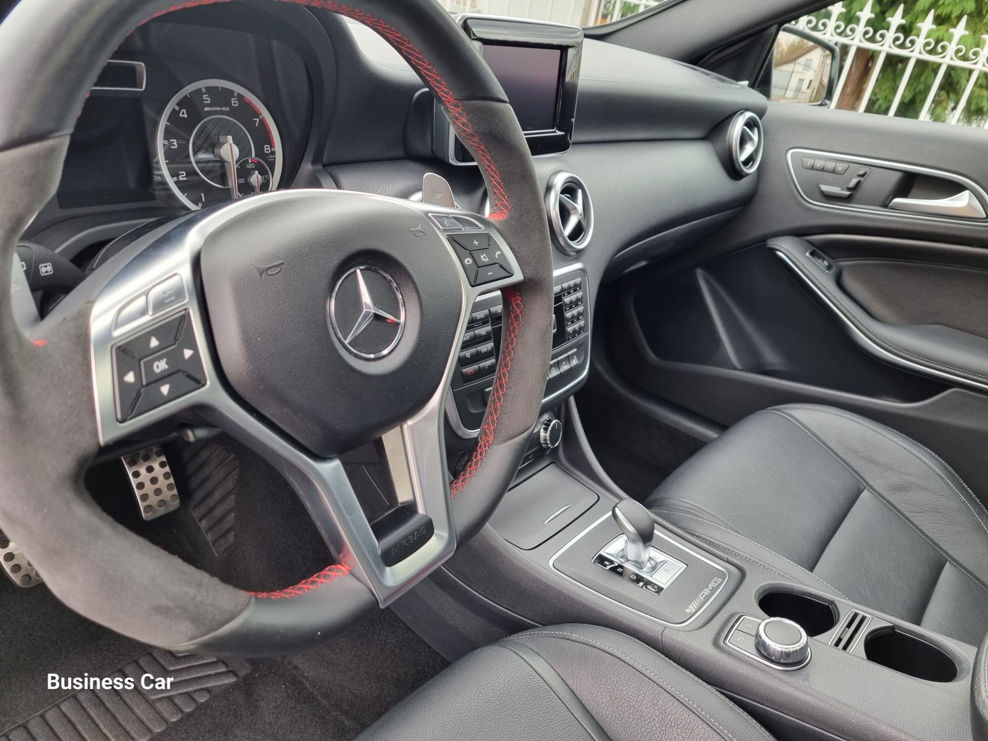 2015,360cv,Unidad con Historial Completo de Mantenimientos en Servicio Oficial Mercedes-Benz, Caja automática con levas en volante y con su mantenimiento efectuado, Asientos Baquets específicos Recaro en piel con regulación eléctrica y memorias, Sistema Navegación y Multimedia avanzado, Sistema de sonido Harman Kardon, Cámara vision trasera, Techo Panorámico Eléctrico, Sillones calefactados, Modos de Conducción, Sensores ayuda aparcamiento, Llantas específicas AMG en 19", Control y Limitador de velocidad, Sistema iluminación interior Ambiente, Interior Black Edition, Todo al día, Precio Transferido y con 12 meses de Garantía Mecánica Europea. 97.100Km.