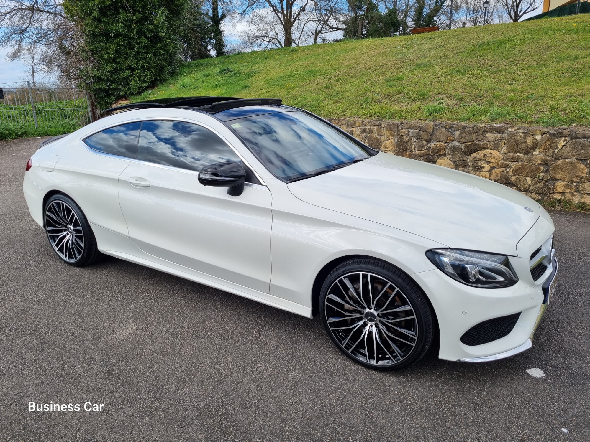 Vehículo Nacional, 2016, 245cv. Línea de diseño y equipamiento AMG, Techo Panorámico Eléctrico, Tren de rodaje deportivo, Sistema Memorias Asientos Reglaje Eléctrico, Asistente Colisión Frontal, Asientos deportivos especificos calefactados en Cuero Ártico, Pantalla Multimedia Carplay, Iluminación Ambiente interior, Paquete de equilibrio aéreo, Salpicadero parte superior en cuero Ártico, Modos de Conducción, Faros Led de alto rendimiento, Asistente Activo de Aparcamiento, Pintura Especial Blanco Diamante Perlada, Volante Deportivo Multifunción con Levas, Llantas Específicas en 20", Sistema de Reconocimiento cansancio, Sensores lluvia-luz, Mantenimiento General Recién Efectuado incluido Caja de Cambios, Precio Transferido y con 12 meses de Garantía Mecánica Europea Premium, 167.000Km.